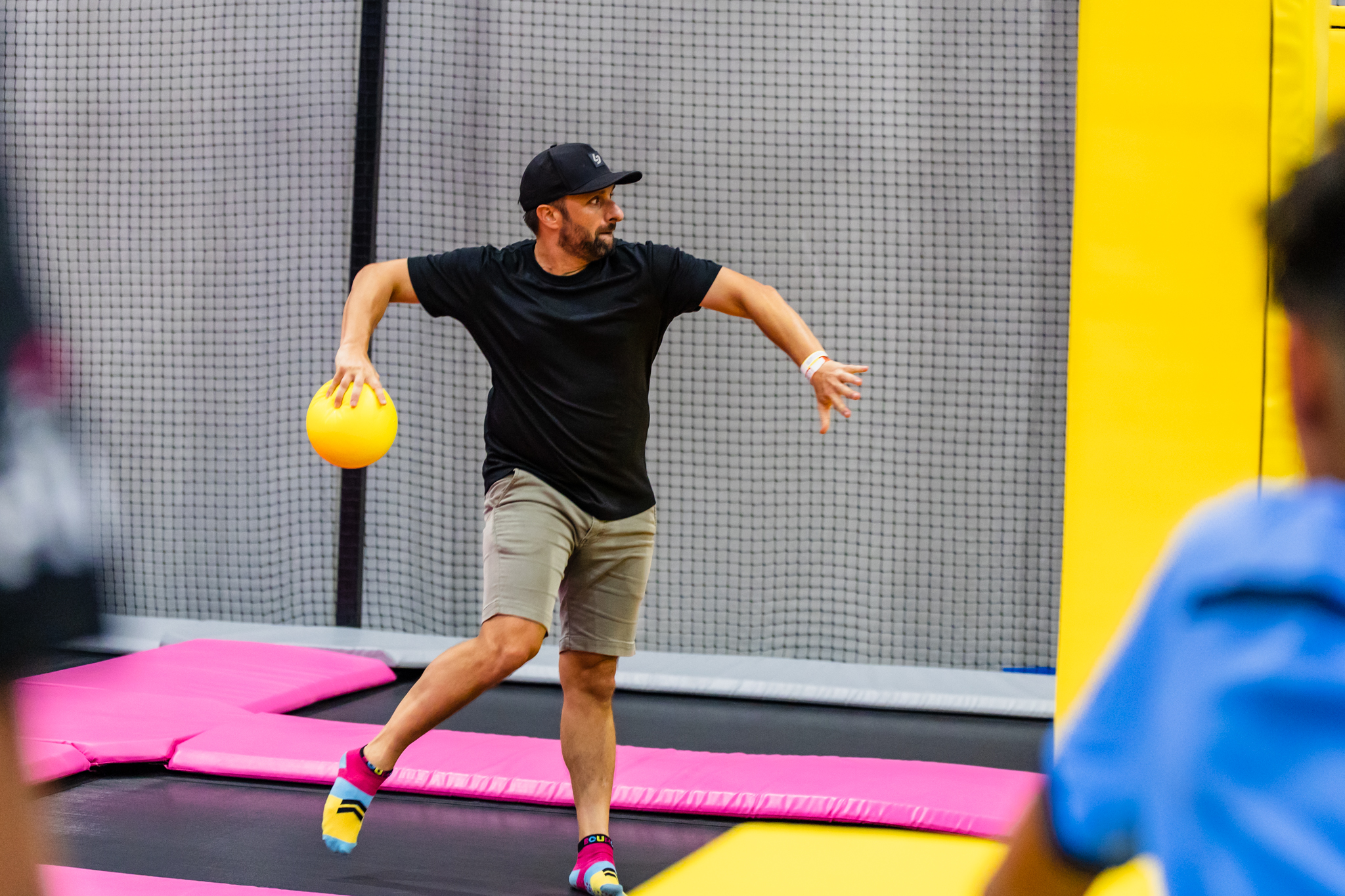 Dodgeball is trampoline warfare. It’s high-energy and awesome fun!